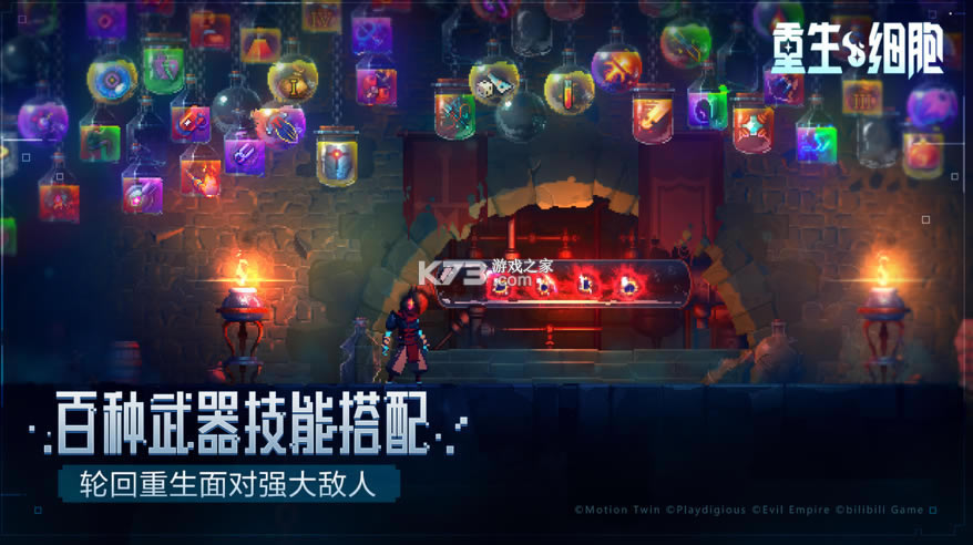 《重生细胞》是一款RogueVania类型的平台动作游戏。你需要在一次一次战斗中锤炼战斗技巧,精通拥有独特使用方式的各种武器,并且将翻滚和闪避等走位操作视为本能,以逃过那些出其不意出现的怪潮侵袭,迎战强横凶残的守卫和Boss。