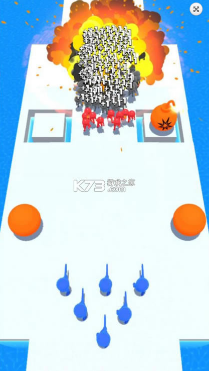 将炸弹推向敌方人群,将它们全都炸掉,这款游戏的玩法非常的有趣,非常适合玩家在休闲的时候玩,可以很愉快的帮你度过休闲时光。