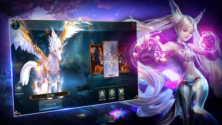 百变造型 闪耀个性,随着套装进阶和升星,外观产生明显差异。多种怒翼外形切换,造型百变。在游戏中行走或战斗时,融入机甲元素的肩甲和武器还会有动态变形效果。新增黑暗套装,经典演绎!
