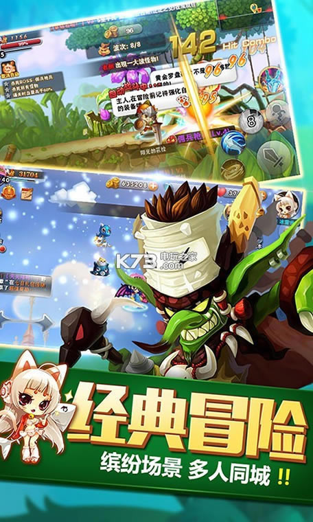 《勇者大陆冒险篇》是一款Q萌横版过关动作手游,为你展现一个可爱活泼、玩法丰富、个性鲜明的冒险世界。多样化的装备组合,自由搭配的技能,跳跃、攀爬以及飞翔的动作设定,让你畅享操作自由。百变时装,酷炫翅膀,尊享称号,造就属于你独一无二的冒险世界。