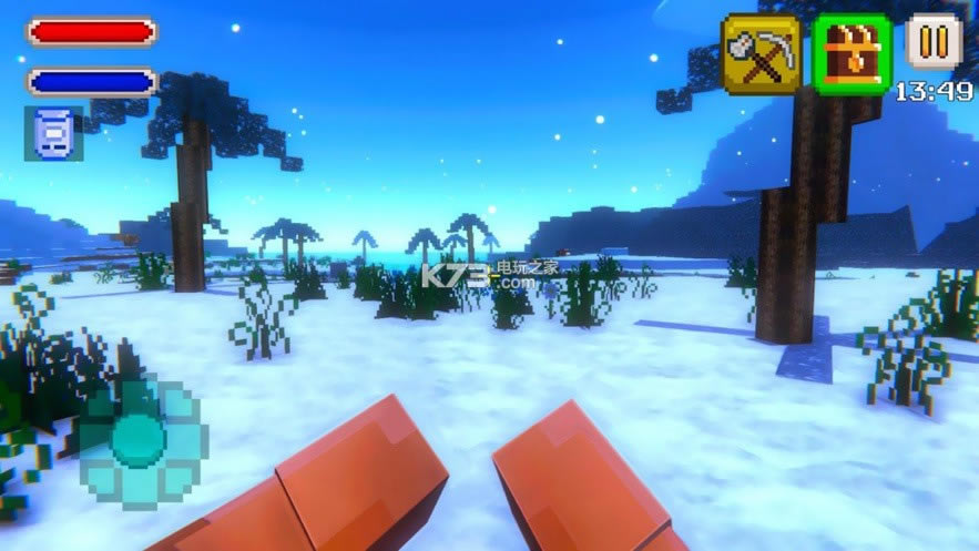 美丽的像素立体图形将请您!探索失落岛屿的秘密。下雪时在雪地里漫步。
