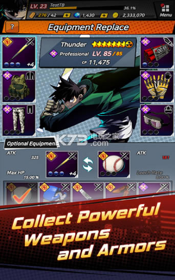 雷霆搏斗求生:史诗般的战斗马上开始,与众多的敌人战斗,成为所有人中的传奇英雄!这是一个疯狂的一键式操作游戏,英雄可以自动导航,当你在战斗时、与BOSS挑战时、掠夺物品材料时,都可以进行一键操作!加入了独特的收集系统,拥有30不同的角色,满足玩家们的收集欲望!