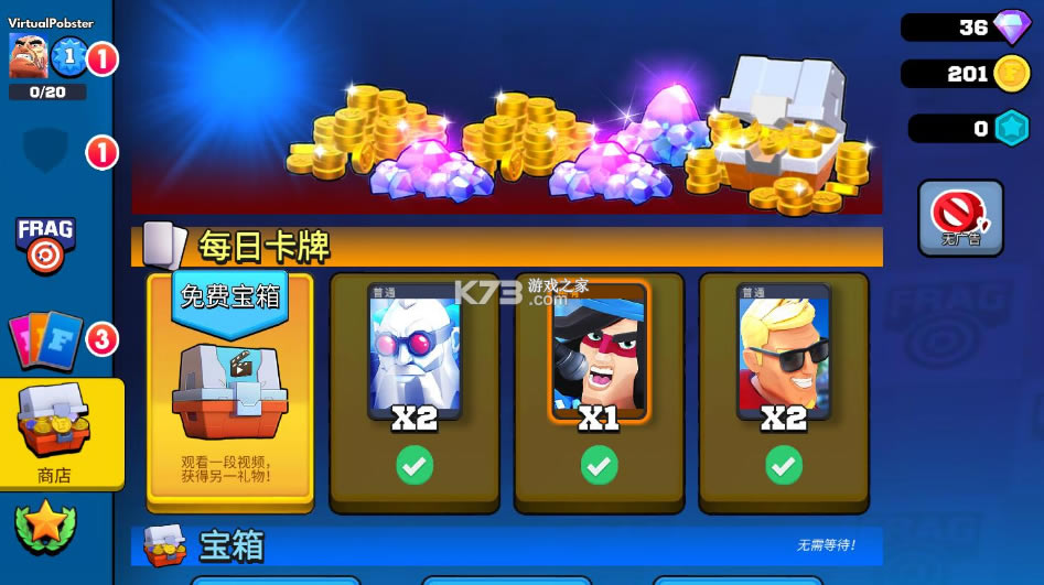 7.在商店中购买战士宝箱、幸运大宝箱和彩虹宝箱能够让你获得许多英雄碎片和金币奖励。