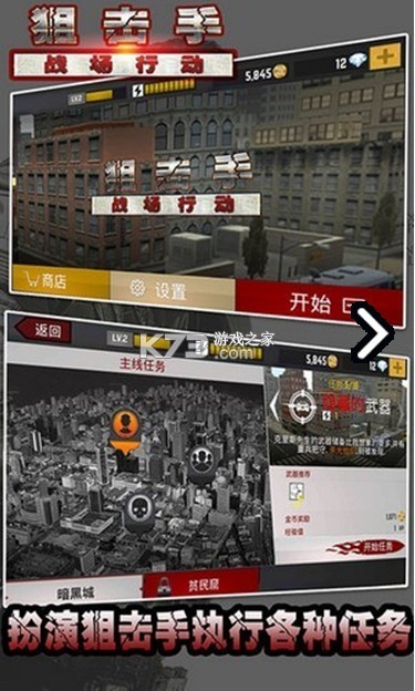 《狙击手战场行动游戏》是一款非常刺激的狙击游戏,玩家能够使用游戏中的各种狙击步枪来进行狙击完成任务,通过关卡完成任务来收集金币购买和升级你的狙击武器。