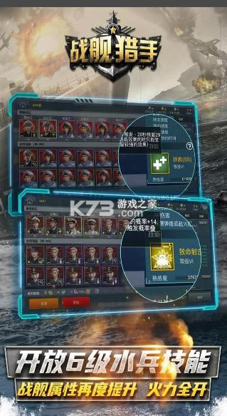 《战舰猎手》经典的玩法重燃太平海域,科幻的皮肤开启实力的对决赛,史诗级的战役,重现经典火力全开,属性再次升级,全方位的出击,开启7v7的战斗,真实的水下视角,还原史诗级的战斗,经典的海战开了。
