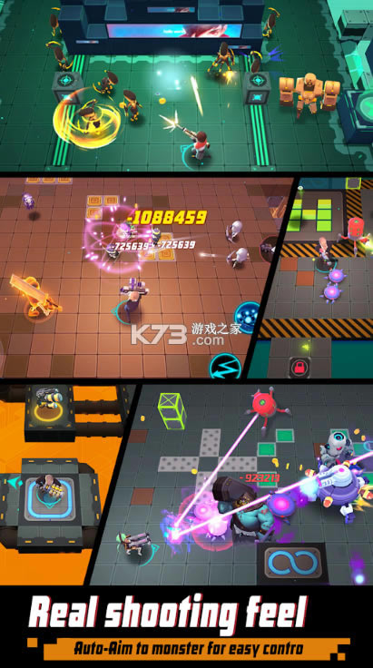 与冒险者马蒂见面;神秘代理人劳拉还有唯利是图的杰森。他们都有特殊的能力和不同的力量。从3个英雄中选择一位与外星人、怪物还有机器人作战,收集和升级武器来爆破和击杀!