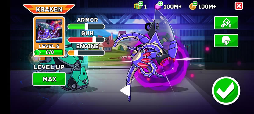你可以战斗获得大量的金币,并且还能对其他零部件进行升级。