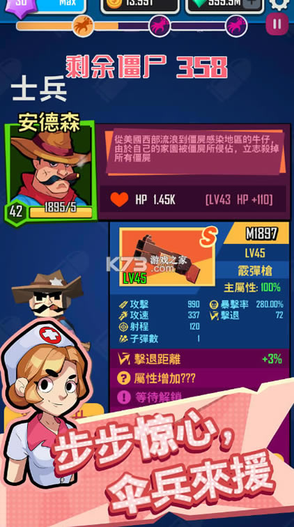 《幸存者小队手机版》一款上手简单且拥有极致割草爽感的射击游戏,并且融入末日生存射击单机等游戏元素,使玩家的体验感拉满,游戏中的角色非常的多,每个角色都有特定的技能,快来下载吧。