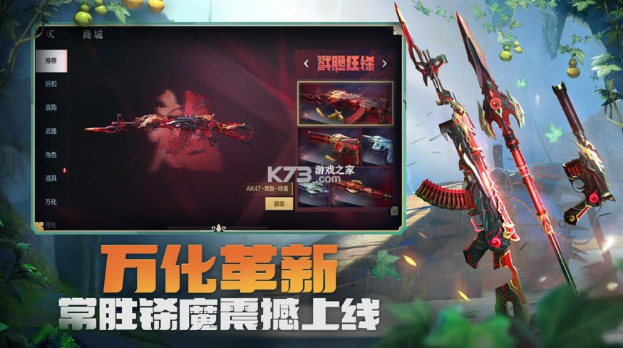 9.寻宝:七兄弟来袭!葫芦娃系列武器及万化将于版本更新后开放获取,前往寻宝入口内的“葫芦娃”参与盲盒活动及合成玩法,有概率获得可赠送好友的宝箱,集齐7种高级葫芦娃武器更可得专属C4皮肤