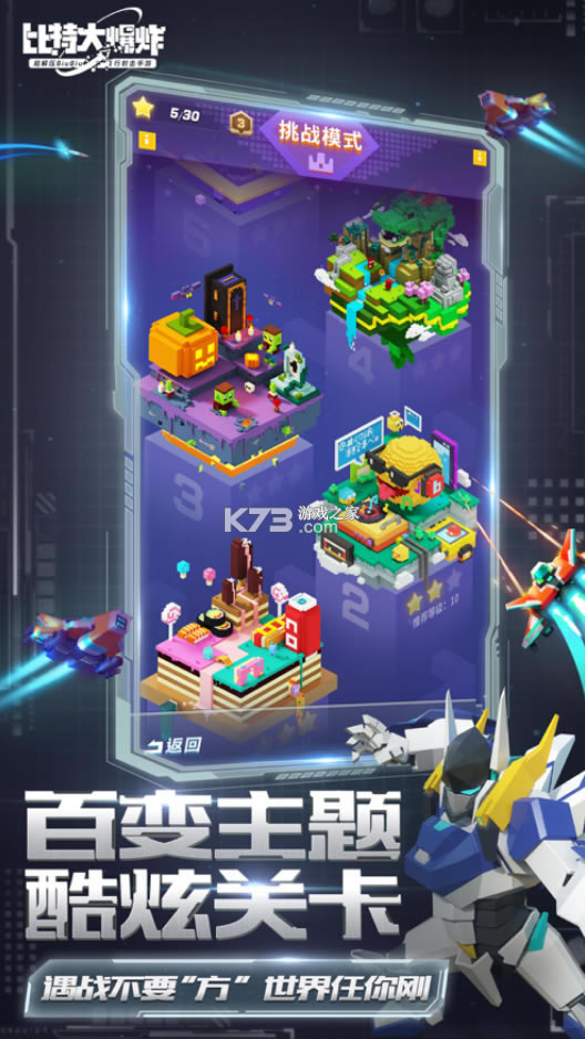 和其他宇宙不一样,在比特宇宙里,各位飞行员需要消灭的敌人可不只有飞机!食物、电玩、鬼怪、忍者所有你见到的方形的东西都是被方块异能入侵的怪物!凭借你们高超的飞行经验消灭他们!把他们轰炸成碎块吧!
