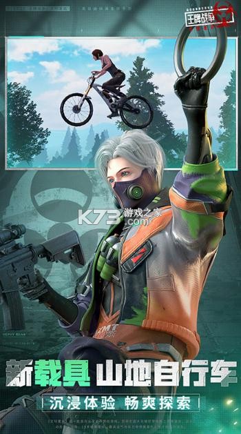 1、首个自行车载具 生还者可以将自行车载具放入自己背包中,使用时,点击跳跃键加速自行车让载具跳跃。全新载具类型,不仅丰富现有载具类型,更富有趣味性!