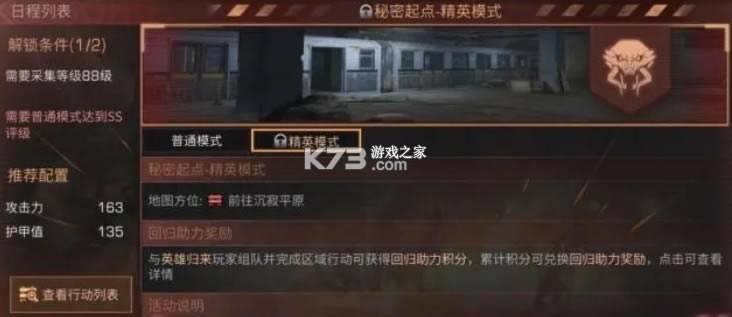 普通模式达到SS且采集等级88级的幸存者可解锁秘密起点-精英模式。