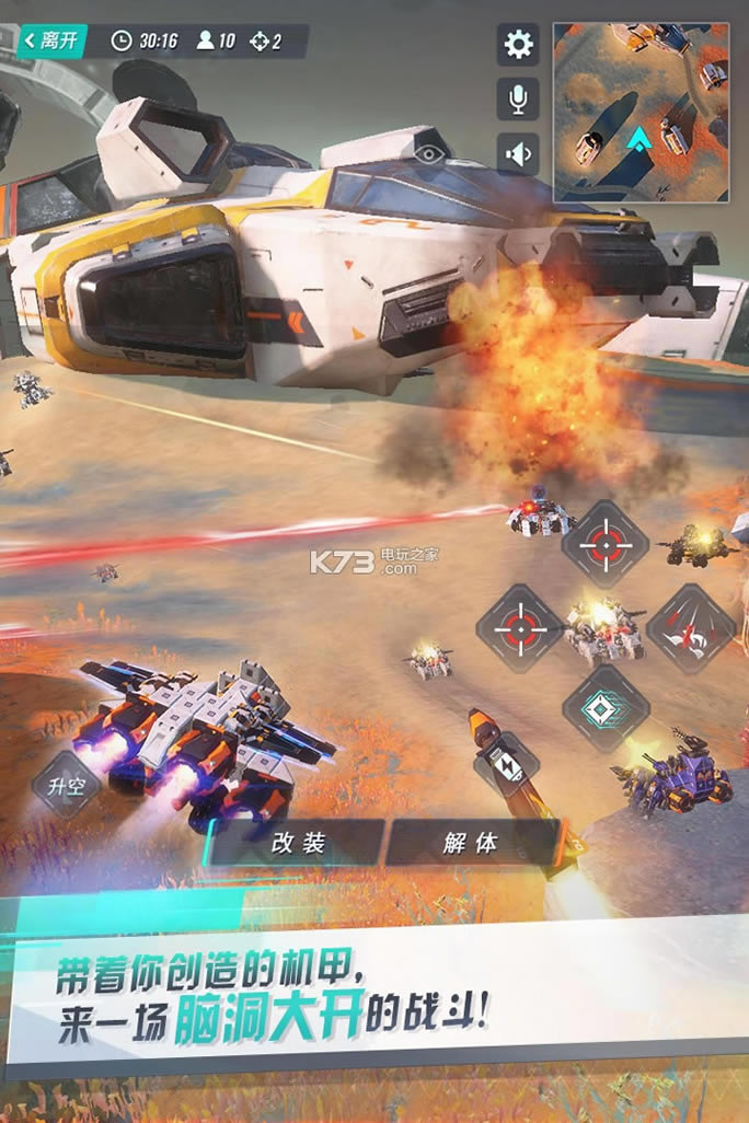 找到更多的零件,你将获得近乎无限的创作自由。速度不够快?换上高速轮。不够坚固?加装护盾。烟雾器+隐身装置,让你一秒消失在敌人眼皮底下。当然,从来没有无限强大的机甲,天才们总会找到平衡。你想创造什么呢?超级战车、喷射飞行器、还是巨型机甲战士?或者,全都想要?