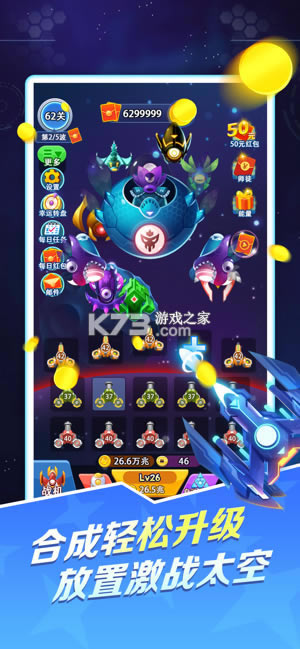欢乐人人战机领红包是真的,作为一款可以轻松在线赚钱的飞行射击类型的游戏,玩家需要将一个个小型的飞机合成战机在广阔的天空中与敌人周旋、战斗,取得胜利后会有丰厚的红包奖励,还能提现。