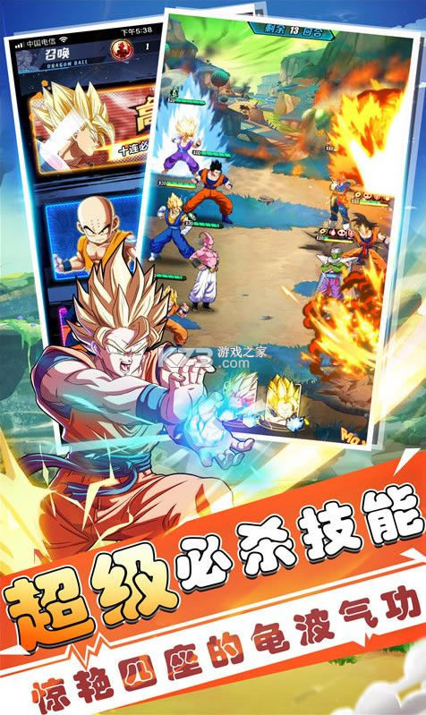2.尖端的游戏引擎高度还原众多龙珠的经典场景,各种战役等你演绎,召唤伙伴并肩作战。