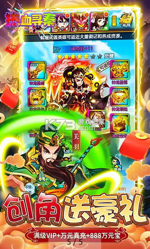 ★创角即送:满级VIP、200秦晶、10000元真充卡、8888万金币、888万元宝、5000体力