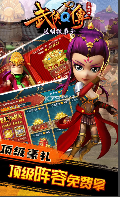 《武侠Q传》顶级阵容等着你,送明教护法弟子和顶级的阵容,在线来抵抗魔教教主重建门派和许多的地址,壮大声势快速的来战斗拥有很多绝佳的体验感,Q版小清新独特的缘分的组合,华丽的动画效果,尽情的享受笑傲江湖。