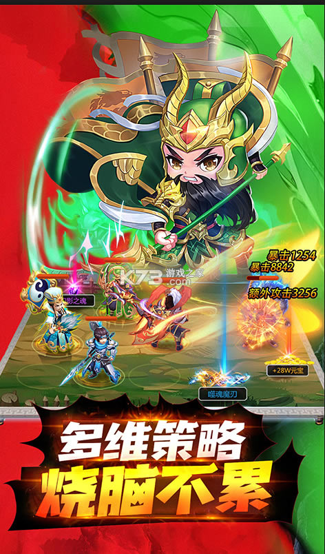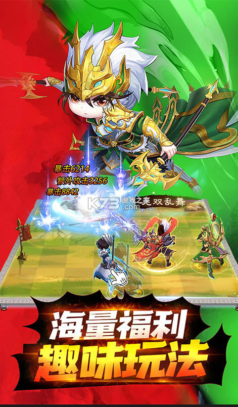 该游戏采用呆萌的Q版画风,将三国中的历史名将以Q版的人物状态刻画出来,再加上高清精美的游戏画质和酷炫的技能特效,给玩家带来极致的视觉体验。