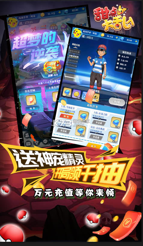 ★首充三倍返利,还可三天连续领取海量道具!每日签到领豪礼,更有六星卡获得!让你轻松升星萌宠精灵,助你组建理想阵容!