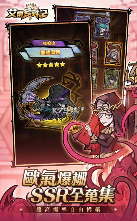 《艾尔多战记》手游是一款主打q版哥特风格画面的手机游戏。经典的克苏鲁冒险题材内容加上丰富的策略战斗玩法,带来更好的游戏体验,更好的享受游戏的乐趣,玩家可以组建强大的队伍,排兵布阵,与Auto heroes一块并肩作战,击破魔王的阴谋,守护艾尔多大陆这片神圣的土地!