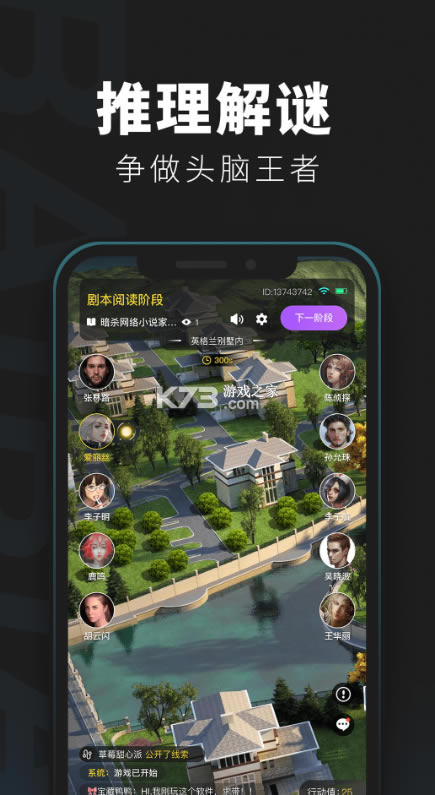 通过阅读剧情故事,代入相对应的角色,通过与其他玩家飙演技、实时语音聊天来获得信息,通过在不同场景搜索线索,找出证据。