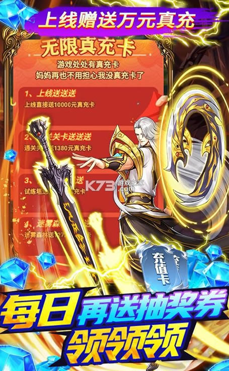 ★上线就送vip8!还有10000元真充。10000元真充第一天无门槛使用!!游戏内活动更有无限真充卡等你来领!