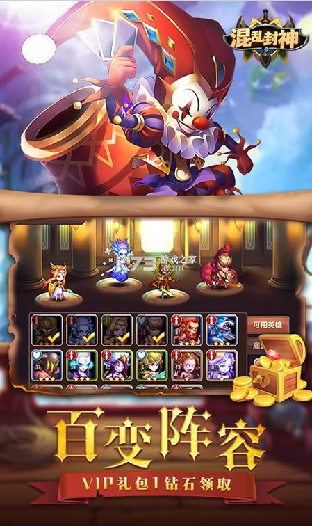 《混乱封神》创角即可送vip福利,操作至上每日送真充福利,vip礼包只需要1钻石领取,百变的阵容搭配超强的福利,百万豪礼每日领,冲级海量的钻石福利,多人协作畅玩,登录还可送金色的英雄。
