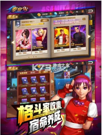 拳皇98 终极之战OL》是腾讯首款SNK正版授权拳皇卡牌手游,收集拳皇宿命格斗家,养成经典人气队伍!游戏突破传统卡牌单一回合制战斗,采用革命性创新QTE(Quick-Time-Event)连击战斗玩法,无限挑战格斗家连击的刺激体验。快来加入操作与挑战的世界,梦回那些曾经一起经历的拳皇岁月。