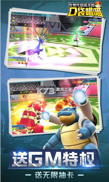 次世代创新高清口袋手游《口袋喵喵-送GM无限抽》重磅来袭!360度视角,打造全方位沉浸体验!采用无缝地图设计,1:1还原真实的口袋世界!除了经典的掌机1v1对战玩法外,精灵巨大化、神兽融合、限时狩猎等创新玩法,将带你感受绝无仅有的全新口袋游戏体验!各式各样的PVE、PVP及丰富精彩的活动福利都已蓄势待发!让我们向着更高的目标出发,在《口袋喵喵》的世界里任意冒险吧!