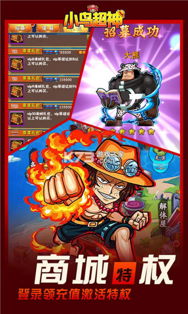 ★创角就送VIP至尊特权,钻石*128888,贝里*2000W,上线就送充值卡!