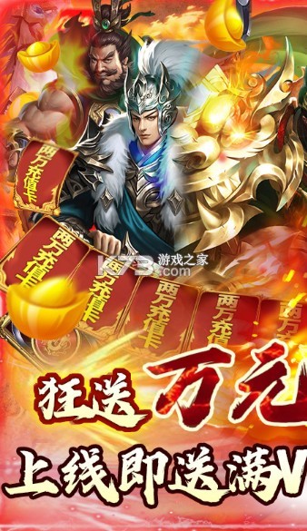 1、全新三国卡牌,倾心巨制,超强武将,超爽福利!上线送满级VIP,十八万元宝,一千万铜钱!