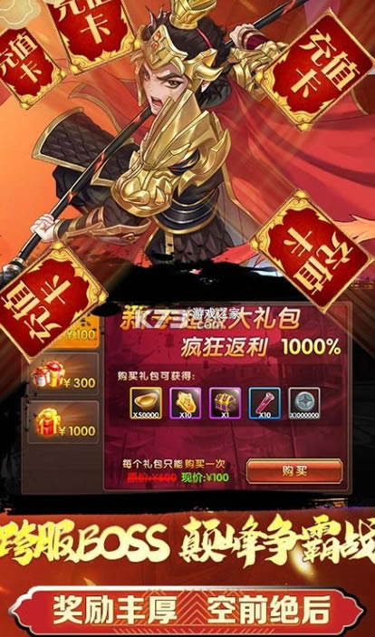 《三国将无双-超神魔将版》是一款品质极高的三国题材动作卡牌战术手游,本次版本暴力调改,升级速率大幅提高,更增加了N多的福利,签到即可得充值卡,永久免费得元宝!