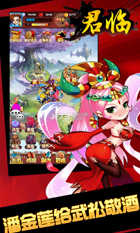 《君临商城版》是一款动作卡牌手游。游戏采用节奏紧凑的回合制战斗模式,精彩的主线故事剧情任你探索,搭配英雄技能羁绊玩法,让您在游戏过程中与梁山好汉一起闯荡江湖,在红尘中邂逅各种美女。现在就带上兄弟,上梁山!!!