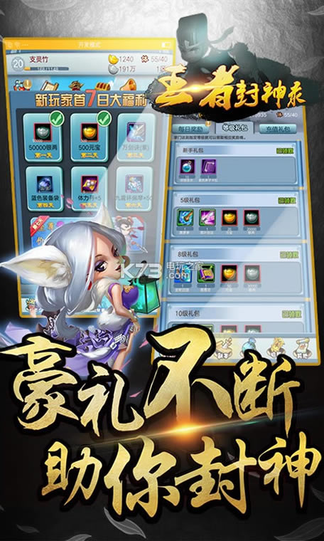 《王者封神录满v版》是一款有着众多优秀游戏内容与丰富玩法内容的最新玄幻仙侠大型手游,《王者封神录满v版》将给玩家提供数不尽的众多游戏精彩与福利特权,免费领取其中众多礼包,随意的在其中体验到与众不同的乐趣。