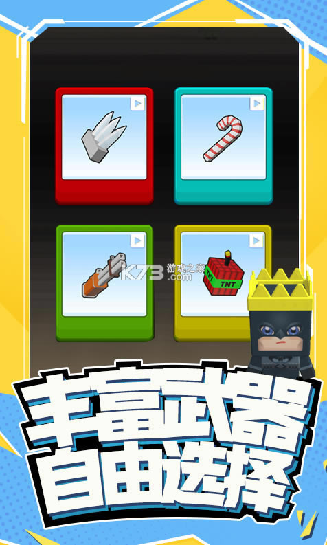 游戏中超多方块小人等你选择,不断解锁大锤,长矛等工具,挥舞你的大锤子不断闯关,粉碎一切对手,成为场上最后幸存者。