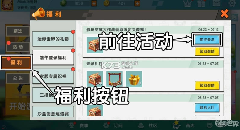 点击前往参与按钮即可进入活动页面,不要忘了点击下方黄色按钮领取迷你宝盒奖励哦!