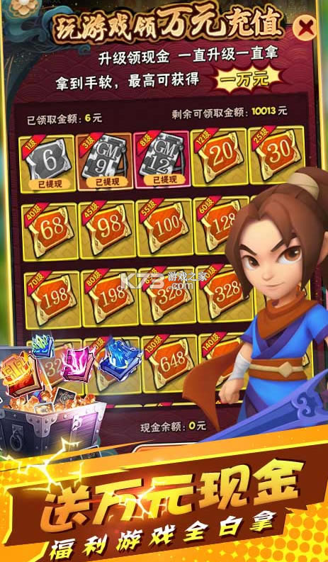 首充礼包(10元):1级赤炎石*1,侠客酒*3,扫荡券*3