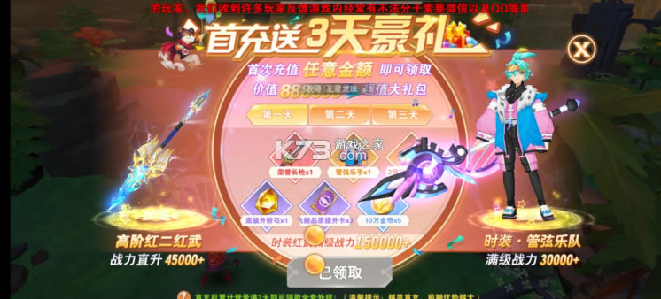首充礼包:经验副本次数券*1,降神召唤卡*5,四星龙珠*10,二星龙珠*10