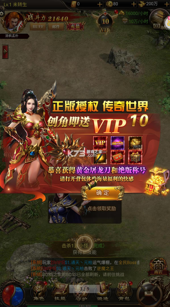★上线送满V、传世屠龙刀、绝版称号,创角大礼包!