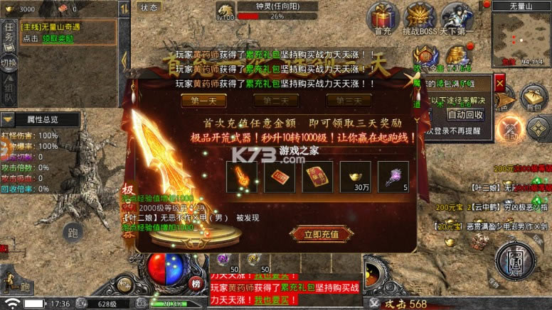 海量副本,兄弟一同组队挑战,杀boss,刷神器、宠物等,支持极速回收