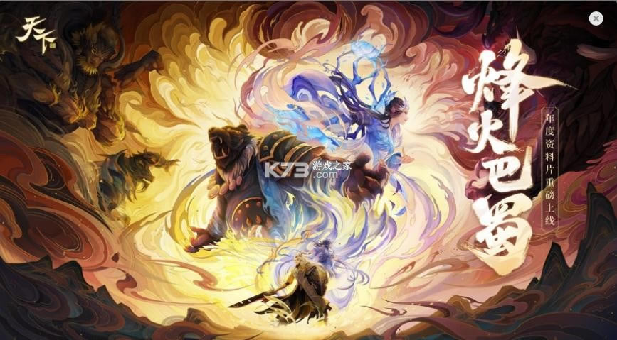 《天下》手游年终资料片「烽火巴蜀」即将震撼上线!新服【烽火巴蜀】首次开启自由交易功能,助力日进斗金;全新剧情故事《烽火起巴蜀》走进大荒过往,百分败还原记忆中的天下贰;全新属性元魂珠玩法即将上线大荒;还有年度PVP盛会“岁末演兵”及“名人堂”盛大开启!更有丰富现金红包等丰厚好礼等你来拿!