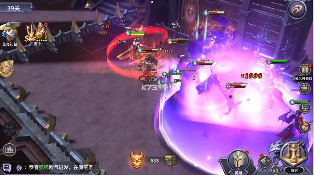 ★首抽即获得SS英雄梅露西娜,后排瞬移突进,击杀无限满怒大招,95%超高闪避;