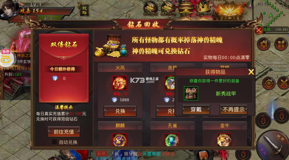★完成任务送满vip,百倍回收!送复活特戒、麻痹特戒,不充值也能上王者!