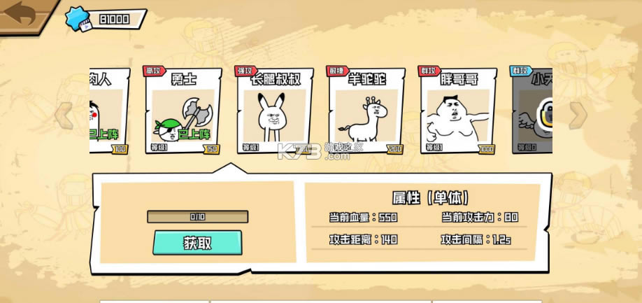 6.游戏属于塔防游戏。你要收钱雇各种逃跑的表情包去迎敌,守卫堡垒。