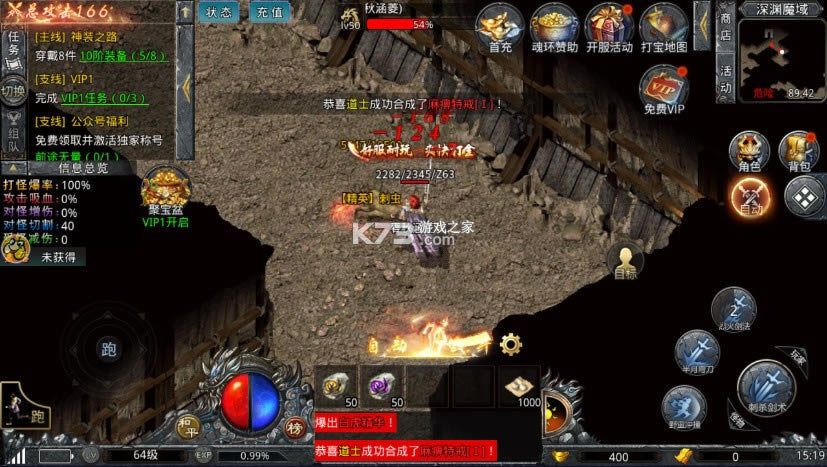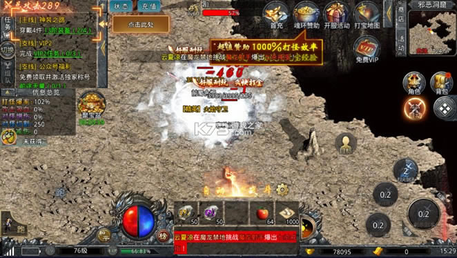 开放的世界大地图,野外自由的PK战斗,攻击的手段也是花样百出,为玩家带来了新的热血传奇玩法;