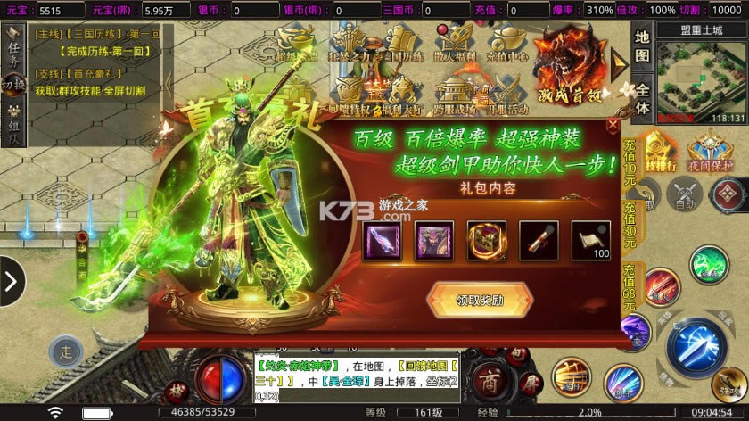 神装全靠打,刀刀爆装,满地光柱,小怪也能爆神装,感受神装满屏高爆的快感。