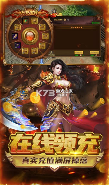 福利设置:上线赠送满级VIP、50万元宝、5000万金币、限定称号绝版属性、每天领千充、打怪无限掉充值卡、完全0氪、给你无比爽快战斗体验;丰富的玩法,打不完的BOSS,极高的爆率让你能够在传奇的海洋里遨游
