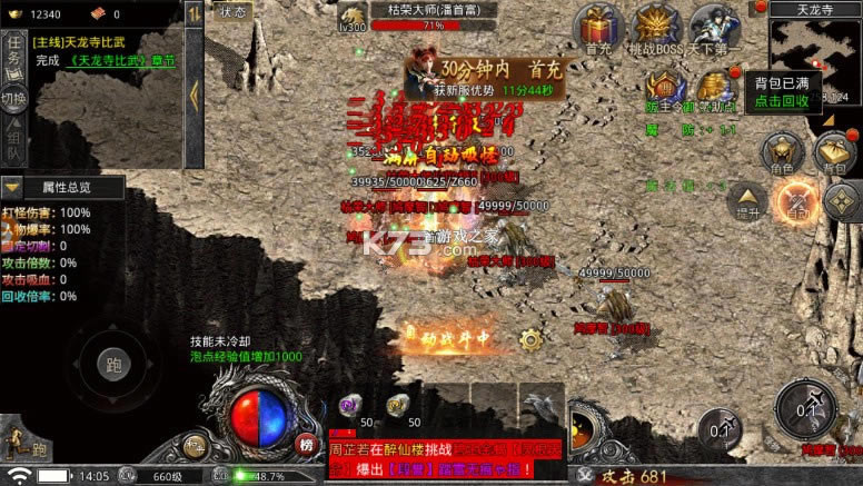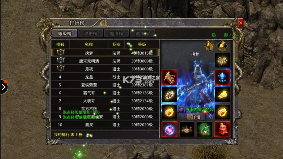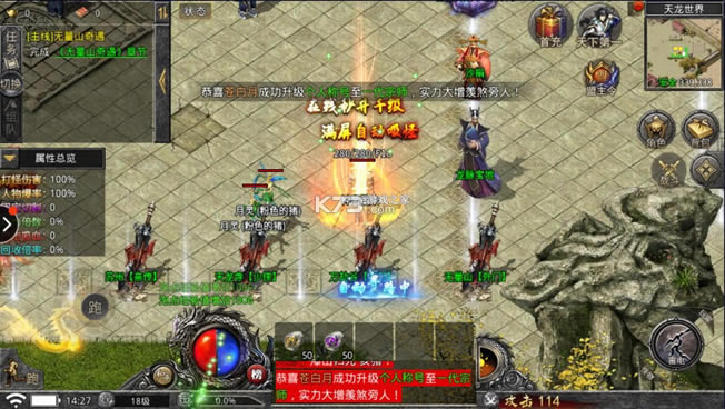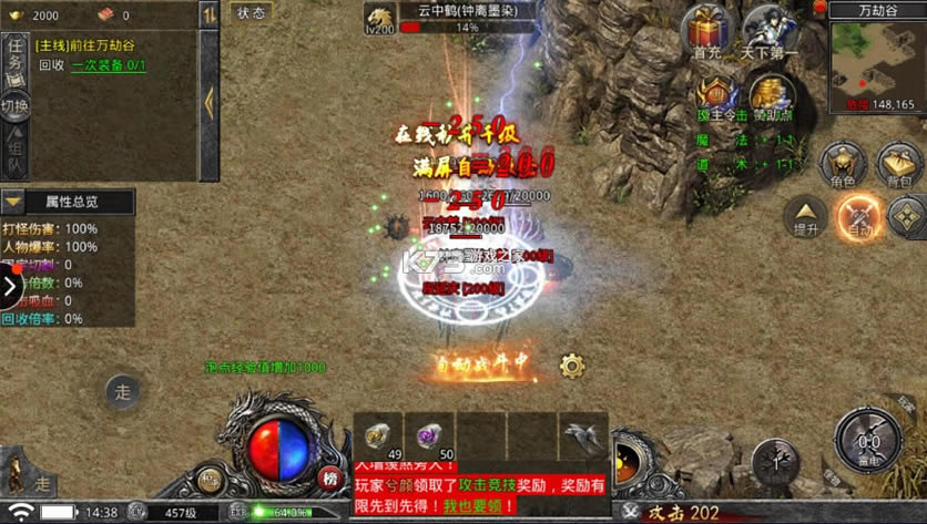 1、新增天魔来袭活动,开服10天后开启,从跨服战场界面进入。每周二、四、六,14:00~14:30玩家可进入活动地图,地图内所有BOSS均为行会归属,击杀天魔首领,可获得符文装备、江湖令和各种材料
