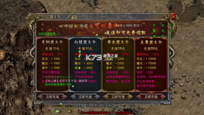 4、新增圣装系统,可通过普通装备合成获得,同等级圣装可获得比普通装备更高的属性。
