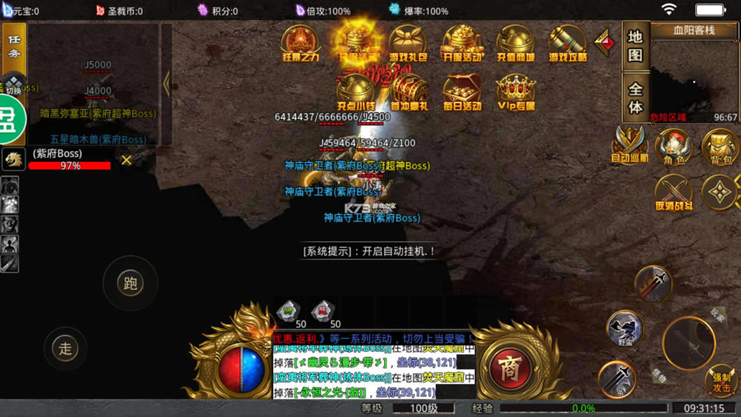 1、点开"游戏礼包"输入礼包码领取自动捡物自动回收激活首冲狂暴。